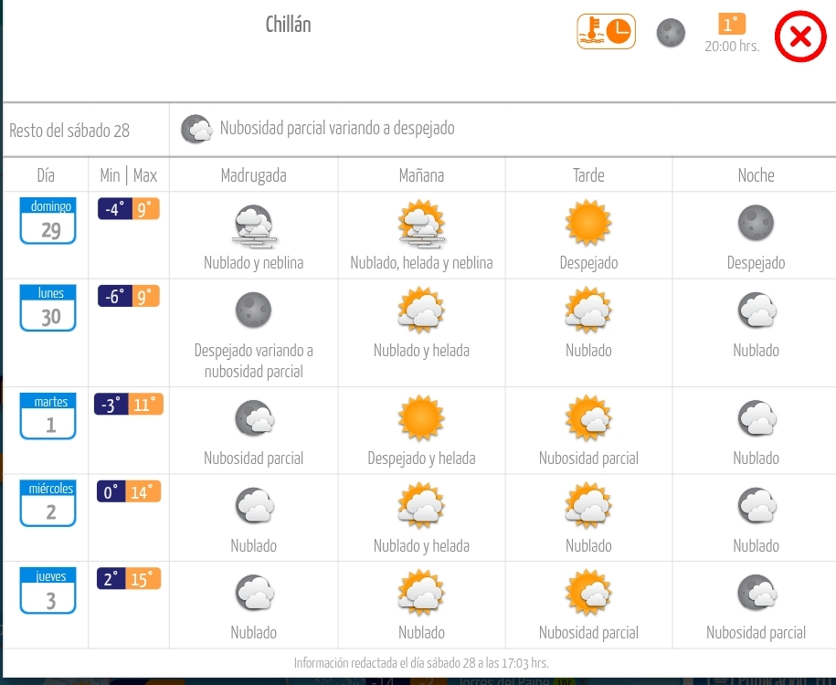 BAJAS TEMPERATURAS EN ZONA CENTRAL Y SUR DEL PAÍS PARA ESTE DOMINGO 29 Y LUNES 30 DE JUNIO.