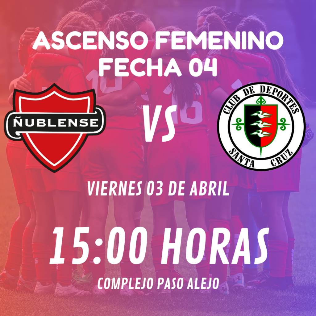 Este viernes 3 de abril, el equipo femenino de Ñublense se enfrentará a Club de Deportes Santa Cruz en la cuarta fecha del Ascenso Femenino. El encuentro se disputará a las 15:00 horas en el Complejo Paso Alejo, donde las jugadoras rojas esperan sumar puntos importantes para seguir avanzando en el campeonato. Visitas: 37