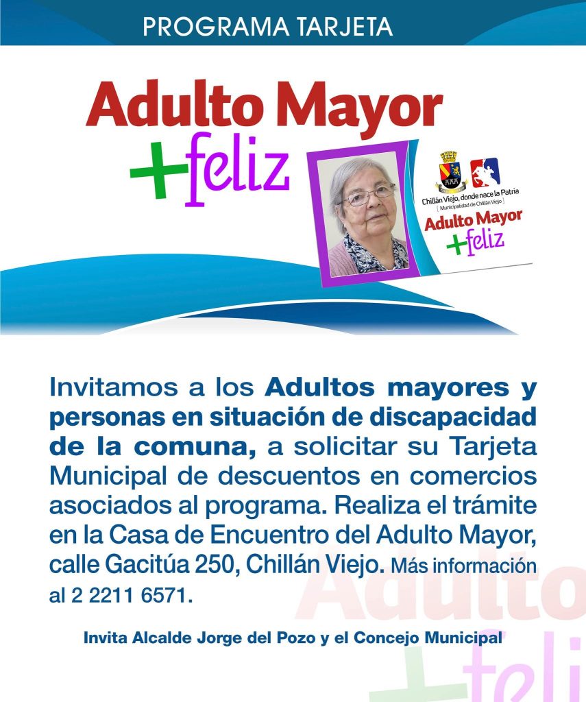 𝔸𝕥𝕖𝕟𝕔𝕚ó𝕟, 𝕒𝕕𝕦𝕝𝕥𝕠𝕤 𝕞𝕒𝕪𝕠𝕣𝕖𝕤 𝕕𝕖 ℂ𝕙𝕚𝕝𝕝á𝕟 𝕍𝕚𝕖𝕛𝕠 Los invitamos a obtener su Tarjeta de Adulto Mayor Más Feliz 🥳, una iniciativa municipal que les ofrece descuentos en el comercio asociado a nuestro programa. 👉 ¡Es el momento perfecto para disfrutar de beneficios pensados especialmente para ustedes! 🔹 ¿Dónde? En la Casa del Adulto Mayor🔹 ¿Cómo? Realizando
