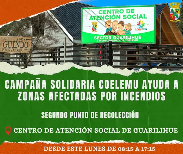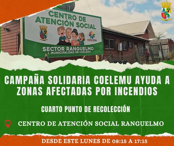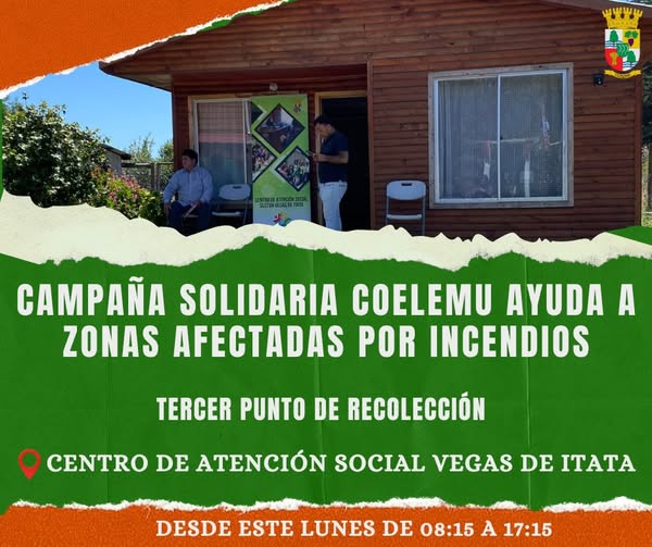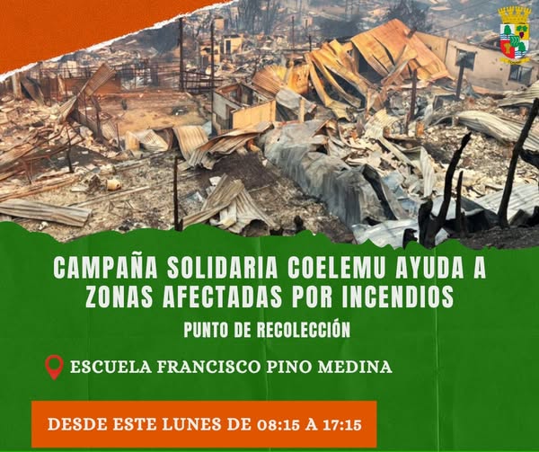 La Municipalidad de Coelemu ha habilitado múltiples puntos de recolección en sectores como Guarilihue, Vegas de Itata, Ranguelmo y la Escuela Francisco Pino Medina, como parte de una campaña solidaria para ayudar a las comunidades afectadas por los recientes incendios. La atención se realiza desde este lunes, entre las 08:15 y 17:15 horas, convocando a vecinos a colaborar con donaciones esenciales.