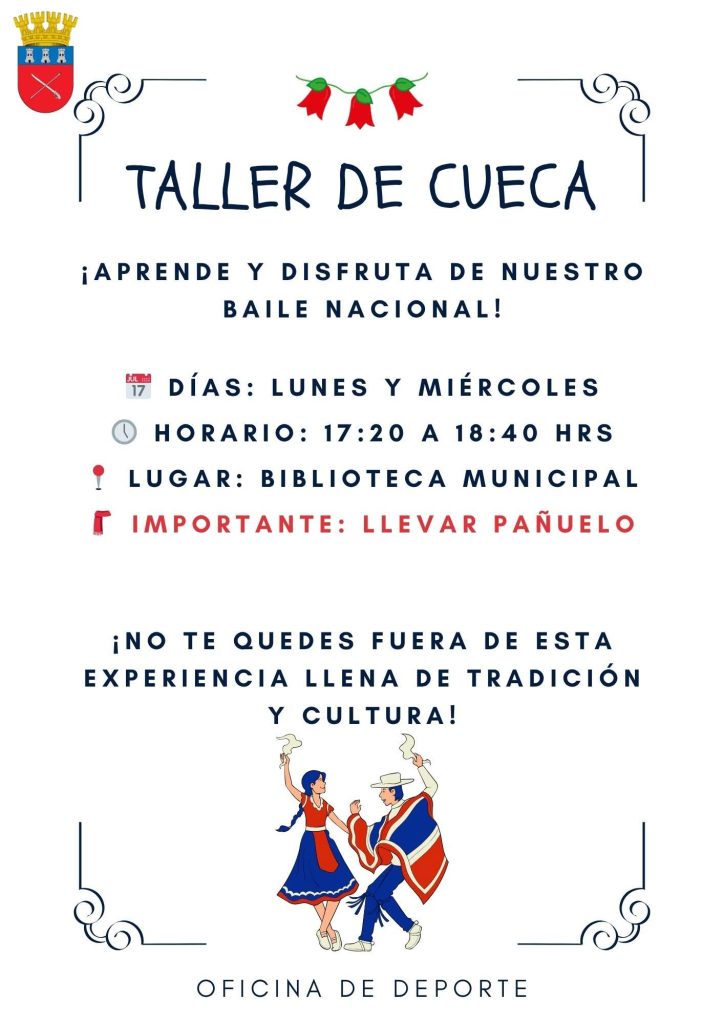 Te invitamos a participar del Taller de Cueca que se realizará todos los lunes y miércoles de 17:20 a 18:40 hrs.