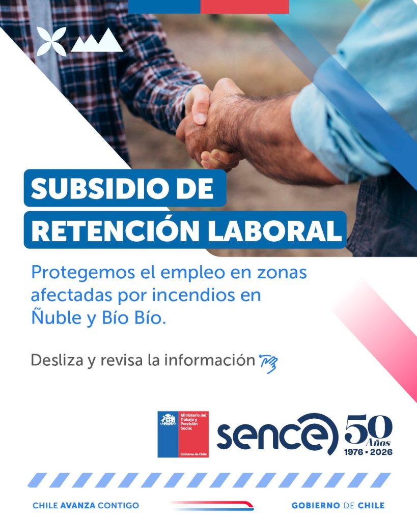 Si eres una empresa de Ñuble o Biobío que se vio afectada directa o indirectamente por los incendios de forestales de enero, desde este lunes 02 de febrero puedes postular al Subsidio de Retención Laboral en www.subsidioalempleo.cl