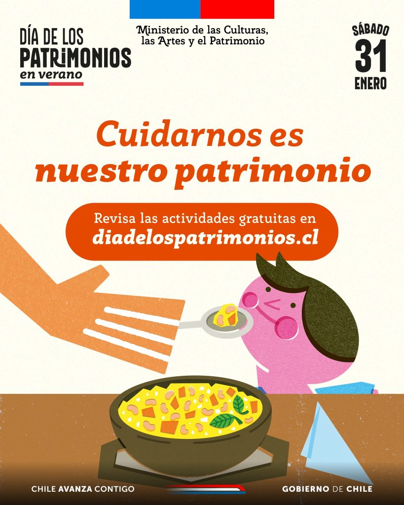 El Ministerio de las Culturas, las Artes y el Patrimonio celebra una edición especial del Día de los Patrimonios en verano este sábado 31 de enero. Bajo los lemas “Cuidarnos es nuestro patrimonio” y “Encontrarnos también es cuidarnos”, la jornada ofrecerá actividades gratuitas en todo Chile, destacando el valor de la cultura, la memoria y el encuentro comunitario. La programación completa está disponible en diadelospatrimonios.cl.