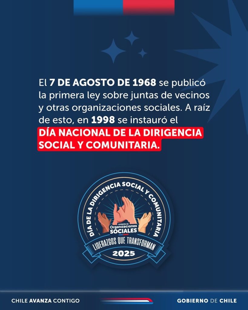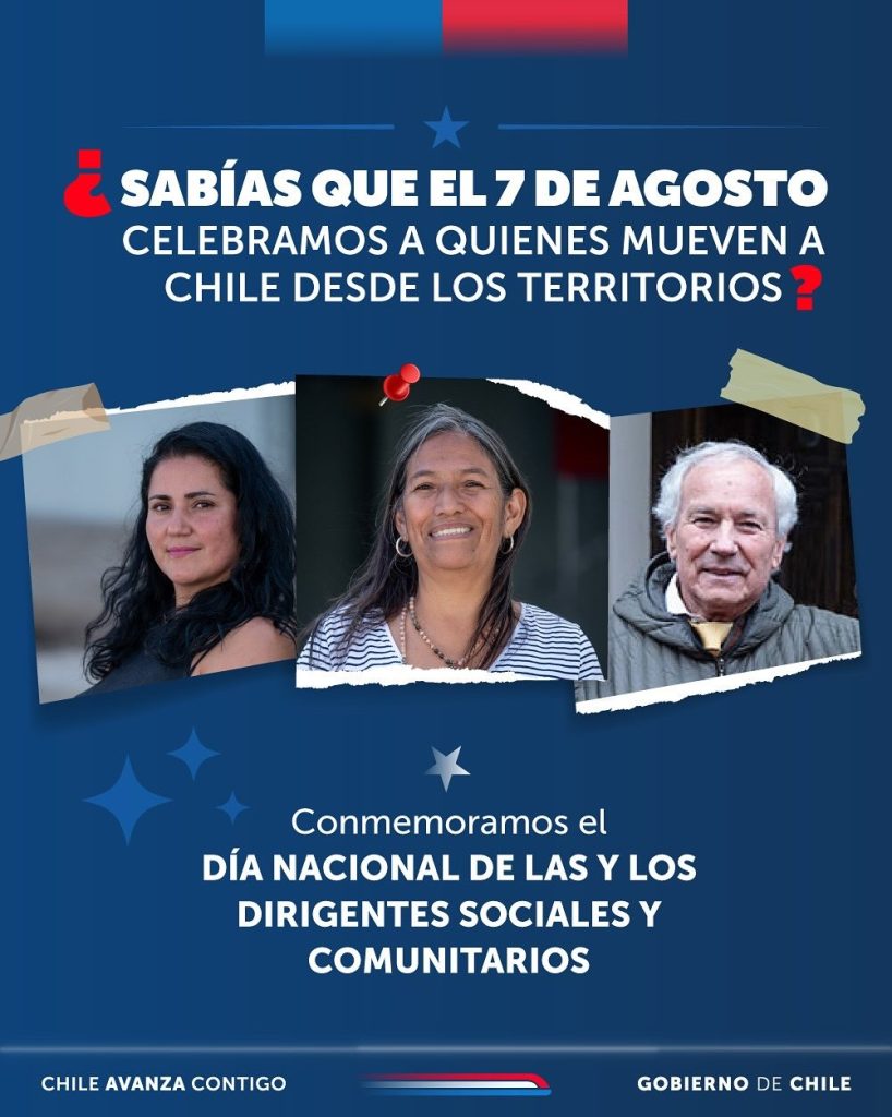 Hoy se celebra y reconoce a las dirigencias sociales del país, que a través de su liderazgo, esfuerzo y sacrificio, logran conectar al Estado con las demandas de sus comunidades, permitiendo mejorar las condiciones de vida de sus territorios, clubes y barrios.