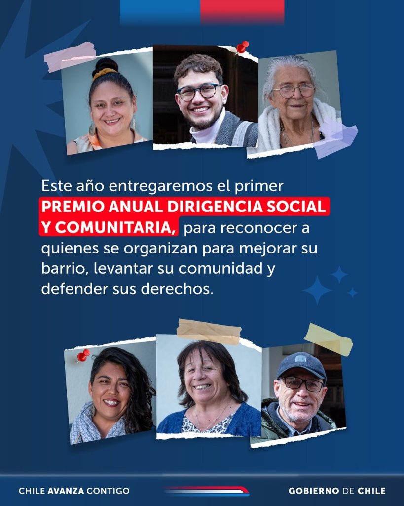 Este año, en una ceremonia especial, se realizará la entrega de la primera versión del Premio Anual Dirigencia Social y Comunitaria, que busca crear un reconocimiento permanente desde el Estado a los liderazgos que construyen y afirman el tejido social de nuestro país.