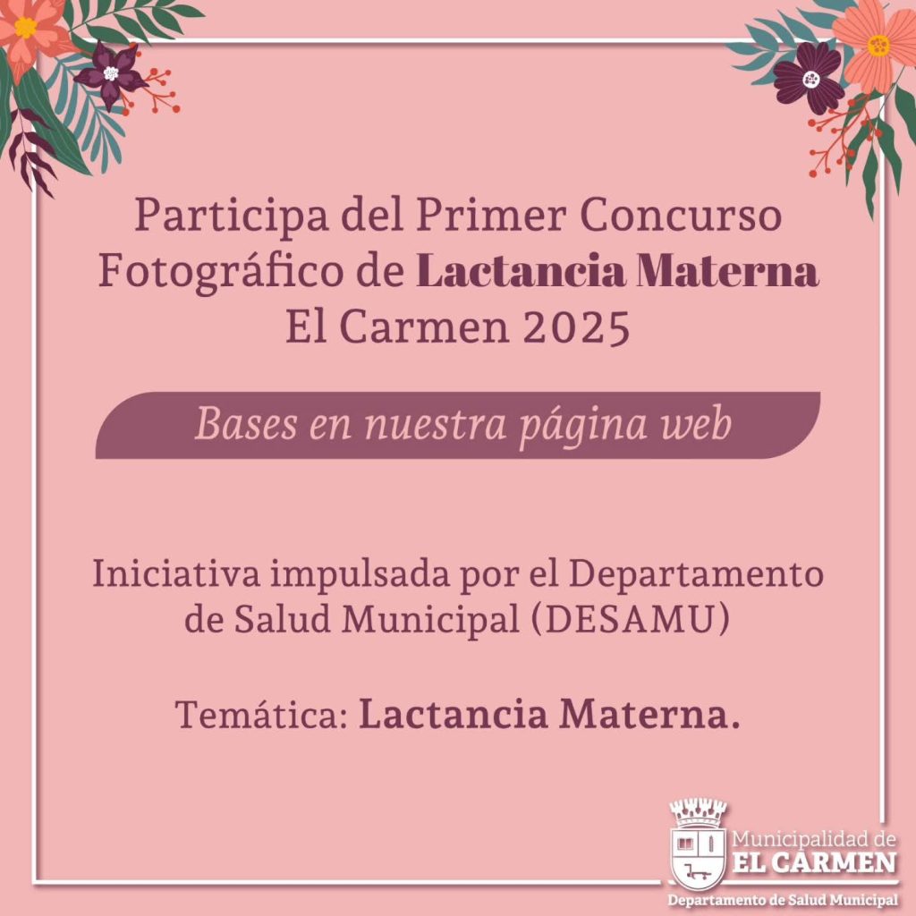 El concurso se centra en la temática de la lactancia materna. Las bases están disponibles en el sitio web oficial de la Municipalidad de El Carmen (municipalidadelcarmen.cl) o en el siguiente link https://acortar.link/v6t3wF.