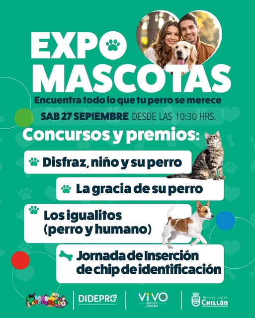 Este sábado 27, desde las 10:30 horas, el corazón de Chillán se llenará de alegría con la Expo Mascotas, un evento familiar que celebra el vínculo entre personas y sus animales de compañía. La jornada incluirá concursos como disfraces para niños y sus perros, el perro más encantador, y el divertido “dueño y mascota más parecidos”. Además, se realizará una campaña de inserción de chip de identificación, promoviendo el cuidado responsable.
