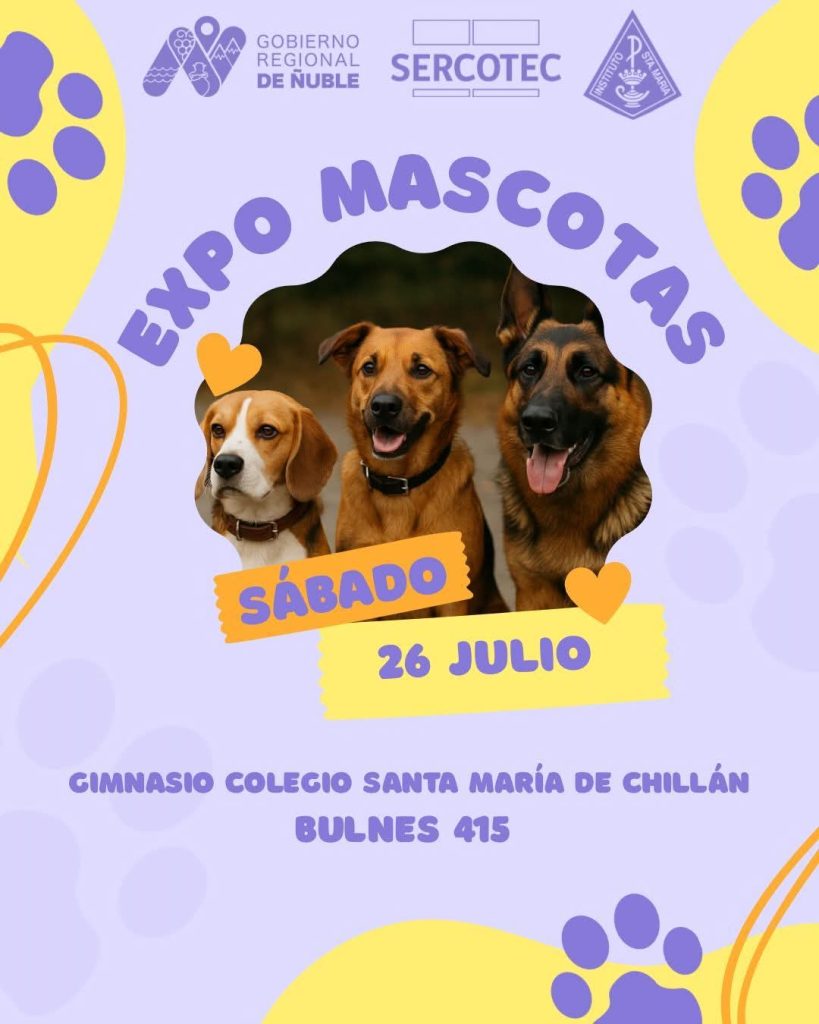 El próximo sábado 26 de julio, el Gimnasio del Colegio Santa María de Chillán (Bulnes 415) será el punto de encuentro para amantes de los animales y emprendedores del rubro, con la realización de la Expo Mascotas Chillán 2025. El evento, organizado por el Gobierno Regional de Ñuble, SERCOTEC y el Instituto Santa María, promete ser una jornada familiar llena de actividades, productos y servicios dedicados al cuidado y bienestar de las mascotas.