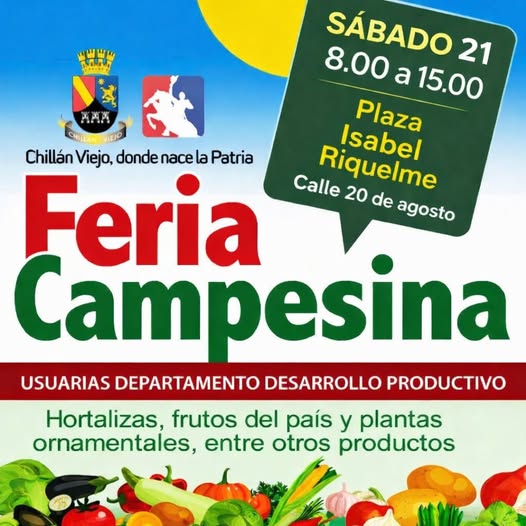 Este sábado 21, Chillán Viejo invita a la comunidad a disfrutar de la Feria Campesina, organizada por el Departamento de Desarrollo Productivo. Desde las 8:00 hasta las 15:00 horas, la Plaza Isabel Riquelme se transformará en un espacio de encuentro con la agricultura local, ofreciendo hortalizas frescas, frutos del país y plantas ornamentales, entre otros productos. Una jornada que celebra el trabajo campesino y fortalece la identidad de la comuna.