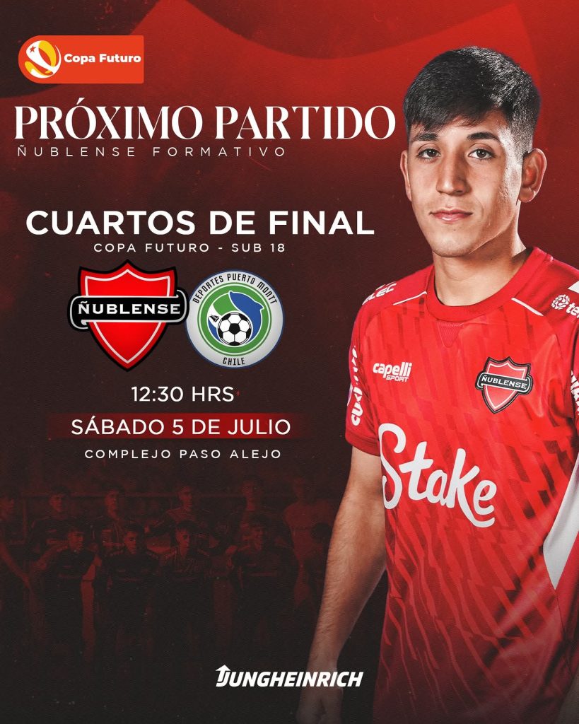 InicioNOTICIAS ÑUBLEFÚTBOL FORMATIVO: ÑUBLENSE JUEGA FINAL EN COPA FUTURO. FÚTBOL FORMATIVO: ÑUBLENSE JUEGA FINAL EN COPA FUTURO. Deja un comentario / DEPORTES, NOTICIAS ÑUBLE Compartir La Sub-18 de Ñublense recibirá, en partido único, a Deportes Puerto Montt en los cuartos de final de la Copa Futuro. Mas información en infografía: FUENTE: Deportivo Ñublense. Visitas: 1