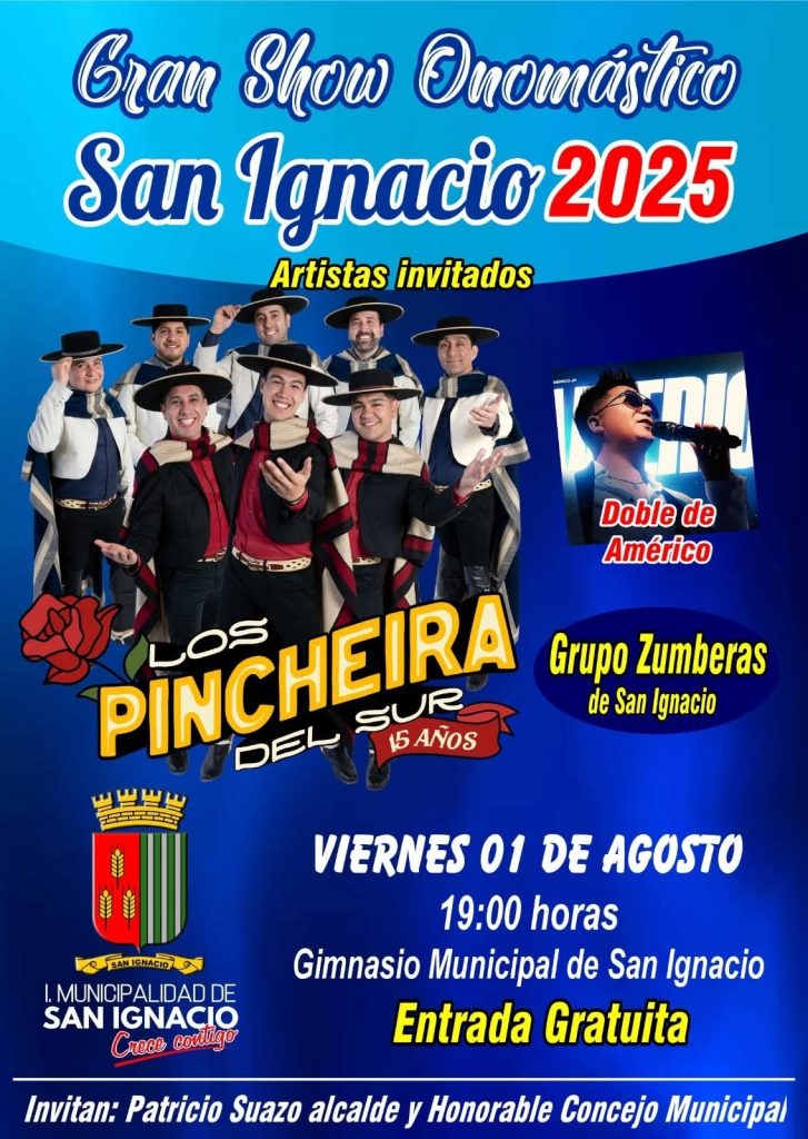 La Ilustre Municipalidad de San Ignacio invita cordialmente a toda la comunidad a ser parte de esta gran celebración en honor a nuestro querido San Ignacio. 💙