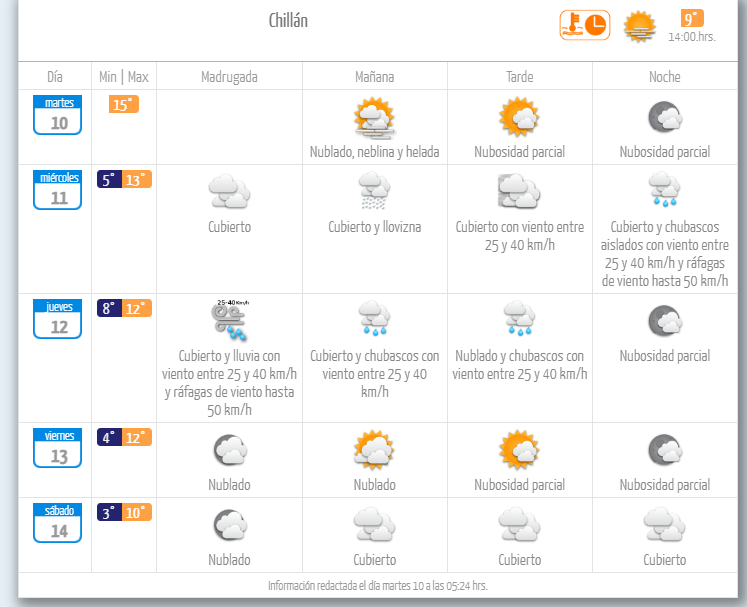 INFORME METEOROLÓGICO POR SISTEMA FRONTAL QUE AFECTARÁ A LA ZONA CENTRO SUR DEL PAÍS.