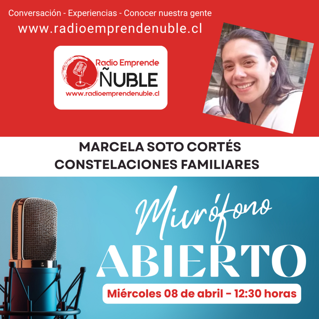 Radio Emprende Ñuble abre sus ondas este miércoles 8 de abril a las 12:30 horas con un nuevo capítulo de Micrófono Abierto. La invitada especial será Marcela Soto Cortés, quien compartirá la fuerza transformadora de las Constelaciones Familiares.