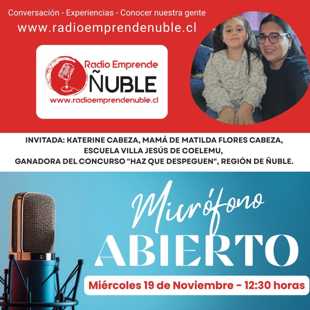 En su primer capítulo, la invitada será Katerine Cabeza, madre de Matilda Flores Cabeza, estudiante de la Escuela Villa Jesús de Coelemu. Matilda fue reconocida como ganadora del concurso “Haz que despeguen”, iniciativa que destaca el talento infantil en la región.