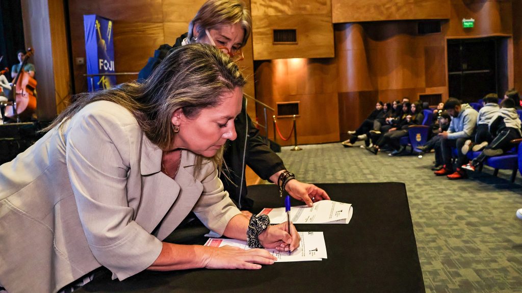 En el Teatro Municipal de Chillán se realizó el Concierto Educacional de la Orquesta Sinfónica Juvenil Regional Ñuble, dirigida por Cristóbal Leiva. El evento permitió al público disfrutar y aprender sobre los instrumentos y la música sinfónica. En el marco de esta jornada, la Fundación de Orquestas Juveniles e Infantiles de Chile (FOJI), representada por Katrina Sanguinetti, y la Corporación Cultural Municipal de Chillán, liderada por Virna Veas, firmaron un convenio de colaboración que fortalece el trabajo conjunto entre ambas instituciones.