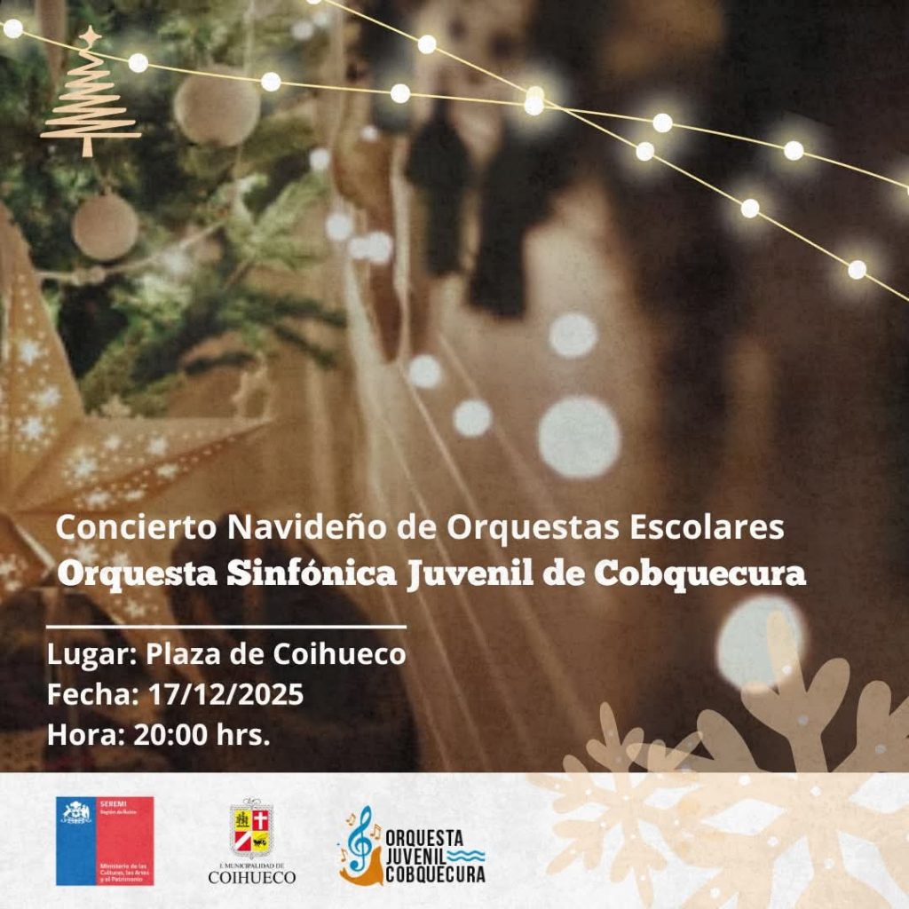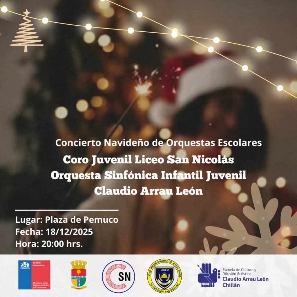 El 17 de diciembre, la Orquesta Sinfónica Juvenil de Cobquecura se presentará en Coihueco, mientras que el 18, en Pemuco, el Coro Juvenil del Liceo San Nicolás y la Orquesta Infantil Juvenil Claudio Arrau León ofrecerán un emotivo repertorio. Ambos eventos comienzan a las 20:00 hrs y cuentan con el respaldo del Ministerio de las Culturas, las Artes y el Patrimonio, junto a las municipalidades locales.