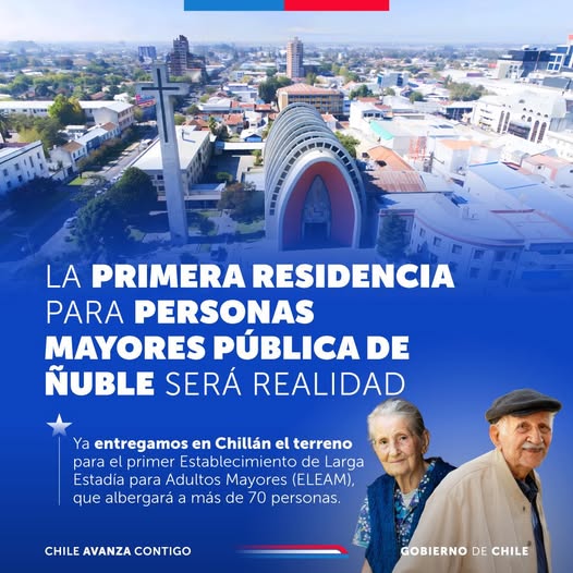 En la Región de Ñuble, el 16,6% de la población tiene 65 años o más. Por eso entregamos una concesión a largo plazo de un terreno fiscal en Chillán para construir el primer ELEAM de la región, que acogerá a más de 70 personas. Otro paso concreto hacia un Chile que cuida.