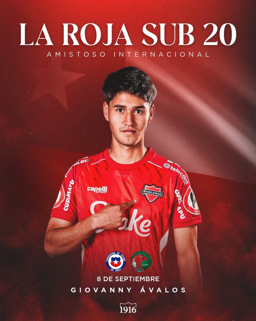 El delantero de Ñublense, Giovanny Ávalos, fue citado a la selección chilena Sub-20 para disputar la próxima Fecha FIFA. El combinado nacional enfrentará a Arabia Saudí en un partido amistoso programado para el 8 de septiembre en São Paulo, Brasil.