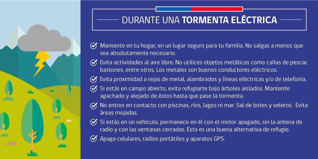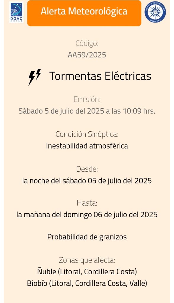 Tormentas Eléctricas en zonas de las regiones de Ñuble y Biobío informa Dirección de Meteorología.