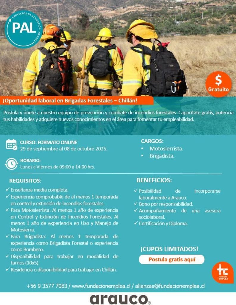 La OMIL Ninhue informa que ya están abiertas las postulaciones para el Programa de Capacitación de Brigadistas Forestales en alianza con la empresa ARAUCO.
