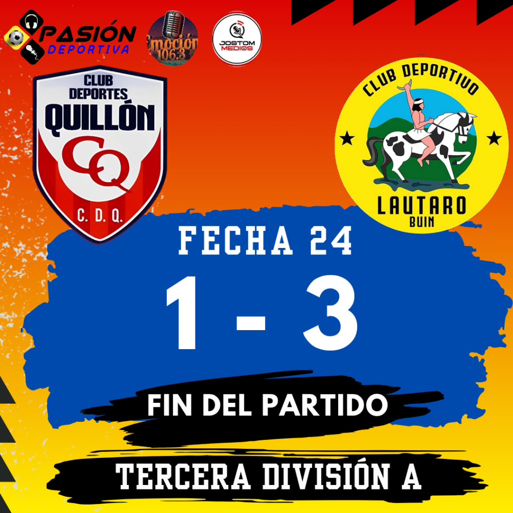 En una jornada intensa por la Fecha 24 de la Tercera División A, Deportes Quillón no logró revertir el marcador y terminó cayendo 1-3 frente a Lautaro de Buin en el Estadio Complejo Colegio Quillón.