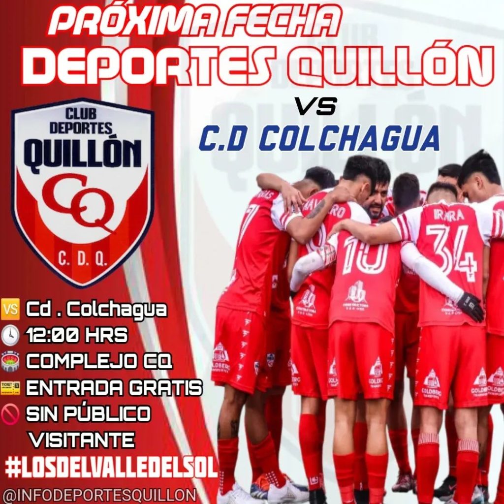 Este sábado 25 de octubre, a las 12:00 horas, Deportes Quillón se enfrentará a Colchagua CD en el Estadio Complejo Colegio Quillón, por la Fecha 28 del campeonato de Tercera División A.
