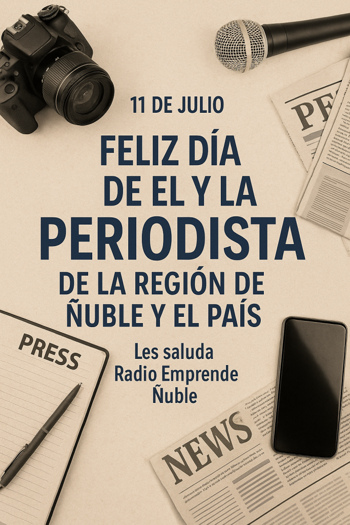 Este 11 de julio, Radio Emprende Ñuble extiende un afectuoso saludo a todos y todas las periodistas de la Región de Ñuble y del país, en reconocimiento a su labor fundamental en la comunicación, la democracia y el desarrollo de nuestras comunidades. ¡Feliz Día de el y la Periodista!