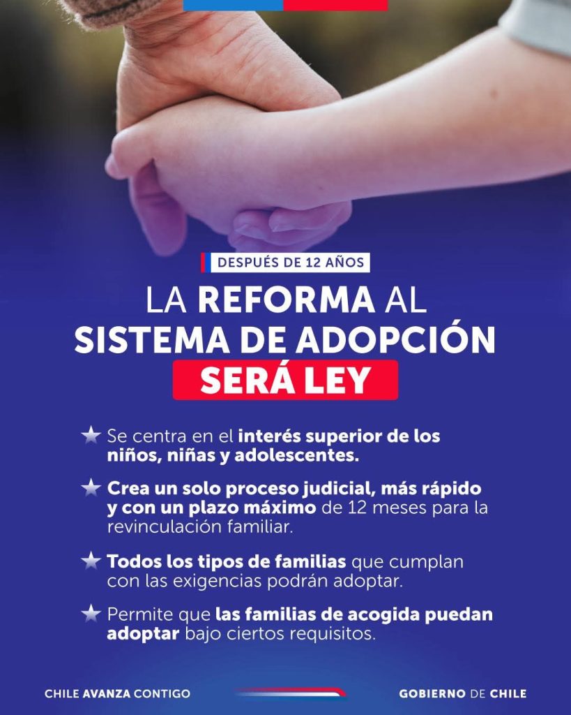 La mejora en el proceso de adopción permitirá que el proceso sea más rápido, que todo tipo de familias que cumpla con las exigencias del Servicio de Protección Especializada de la Niñez y Adolescencia pueda adoptar y además, que las familias de acogida también puedan hacerlo bajo condiciones específicas.