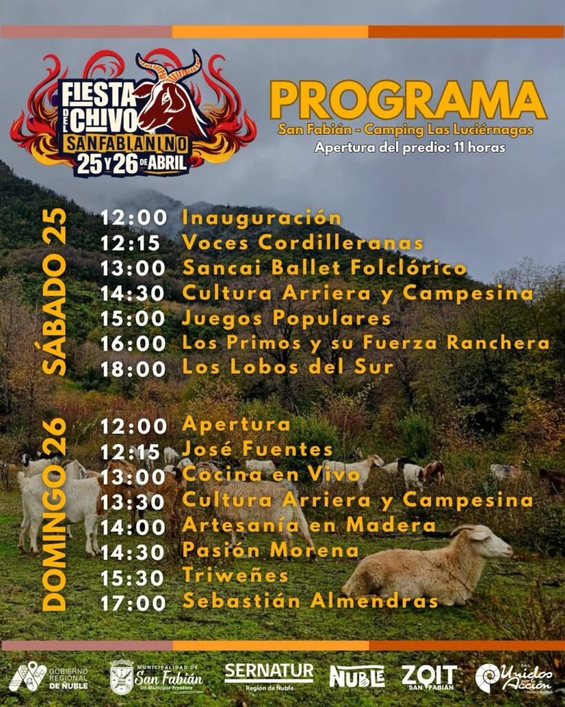 Este 25 y 26 de abril, San Fabián vivirá la Fiesta del Chivo Sanfabianino en el Camping Las Luciérnagas.