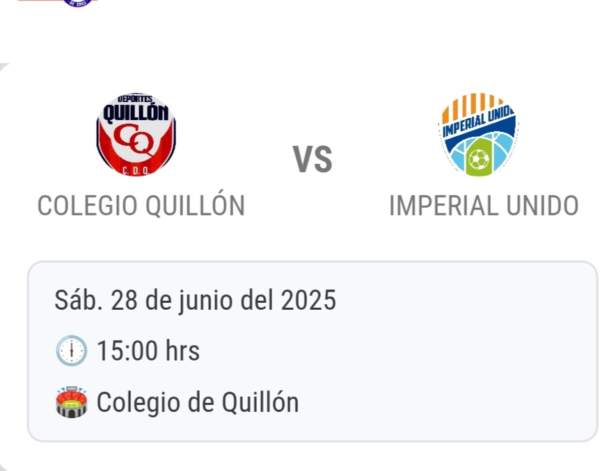 Deportes Quillón después de cumplir una fecha libre por calendario en el campeonato de Tercera A, regresa en la fecha 12 donde recibira de local a Imperial Unido, durante la jornada del día sábado 28 de junio, desde las 15:00 horas en ele Estadio Colegio Quillón.
