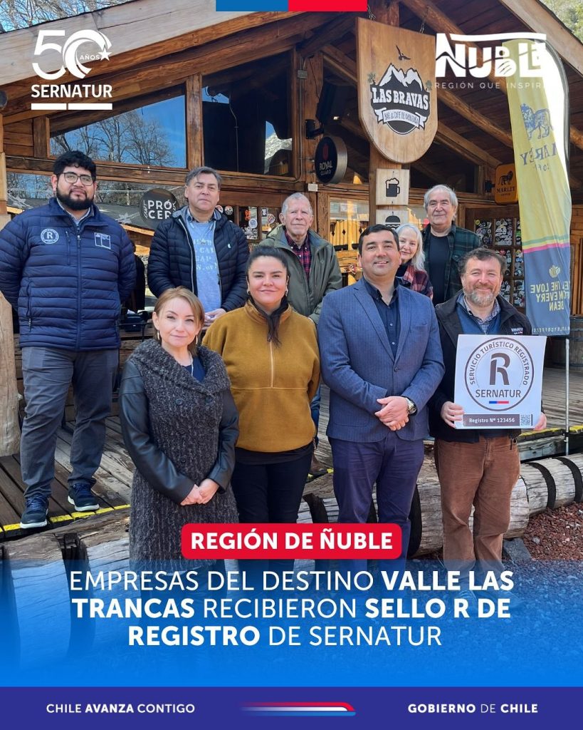 Con la presencia de seis empresarios y empresarias del destino Valle Las Trancas, se hizo entrega oficial del Sello R de Registro de Sernatur, que certifica el cumplimiento de estándares de calidad, seguridad y formalidad turística. ![]()