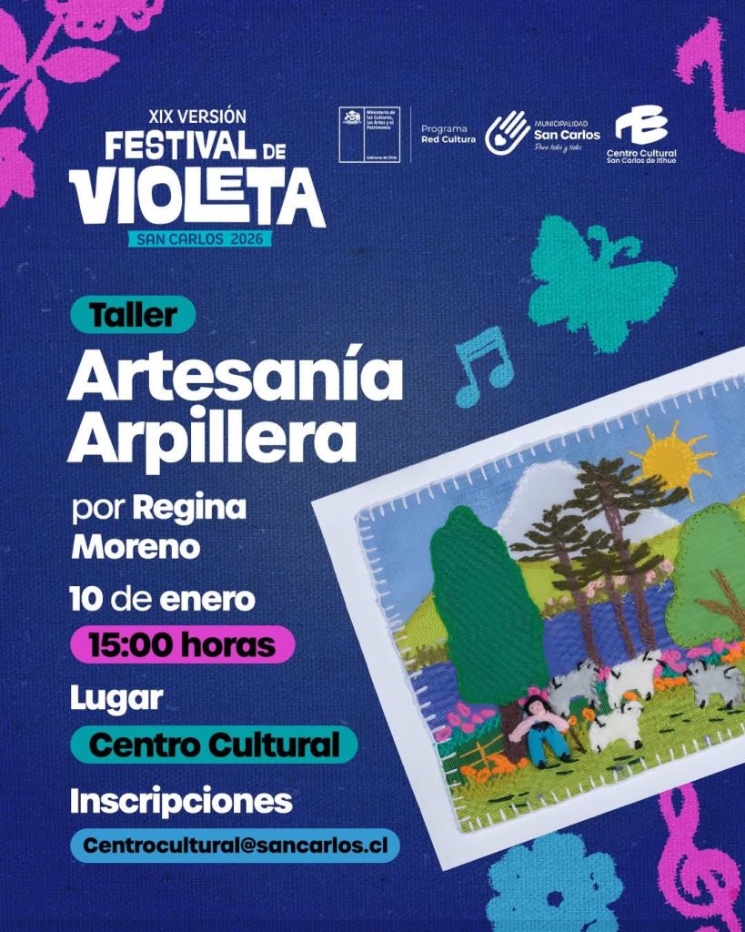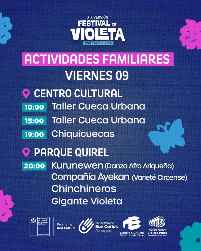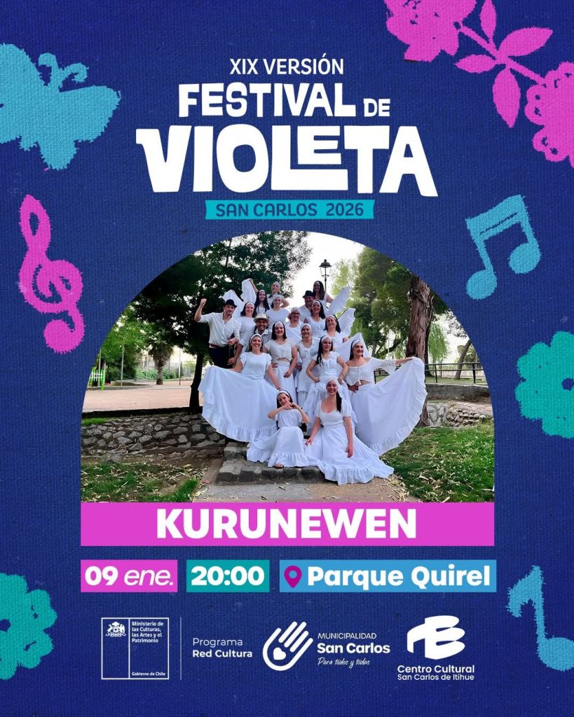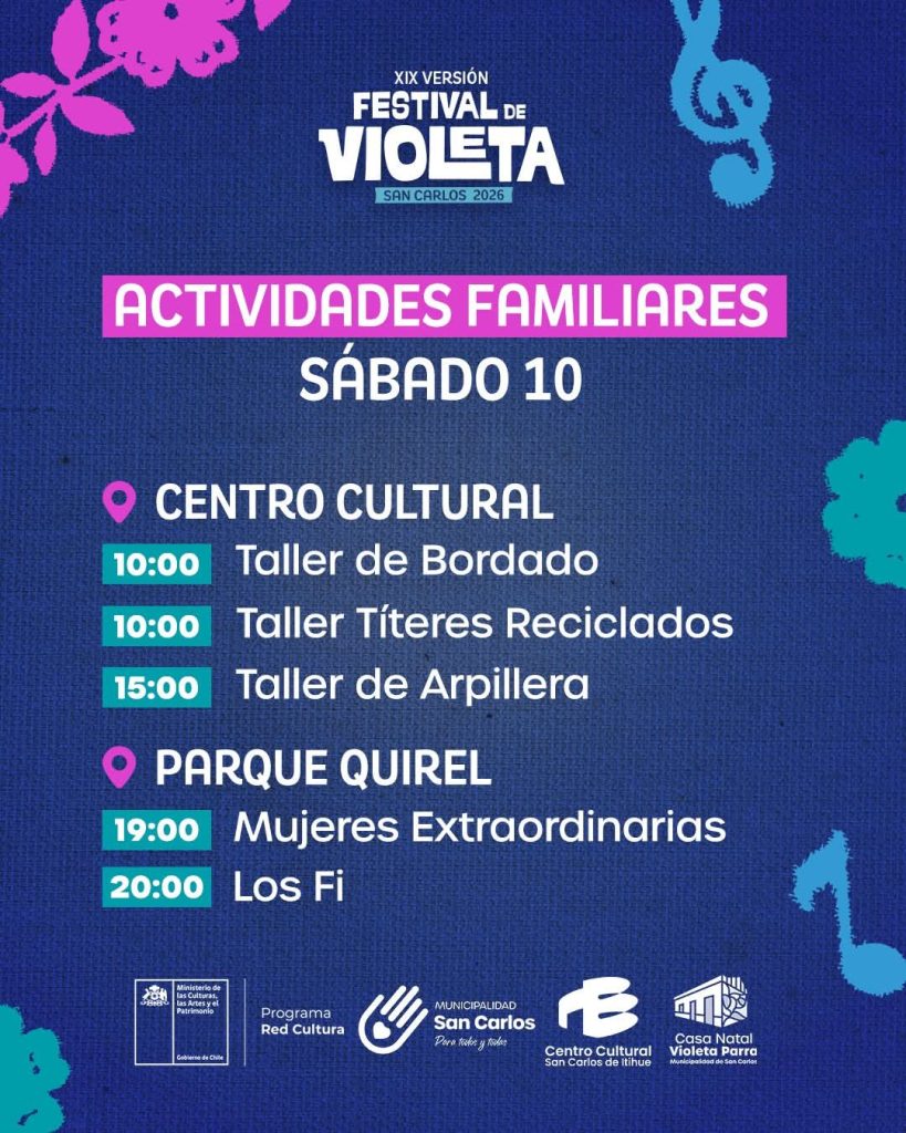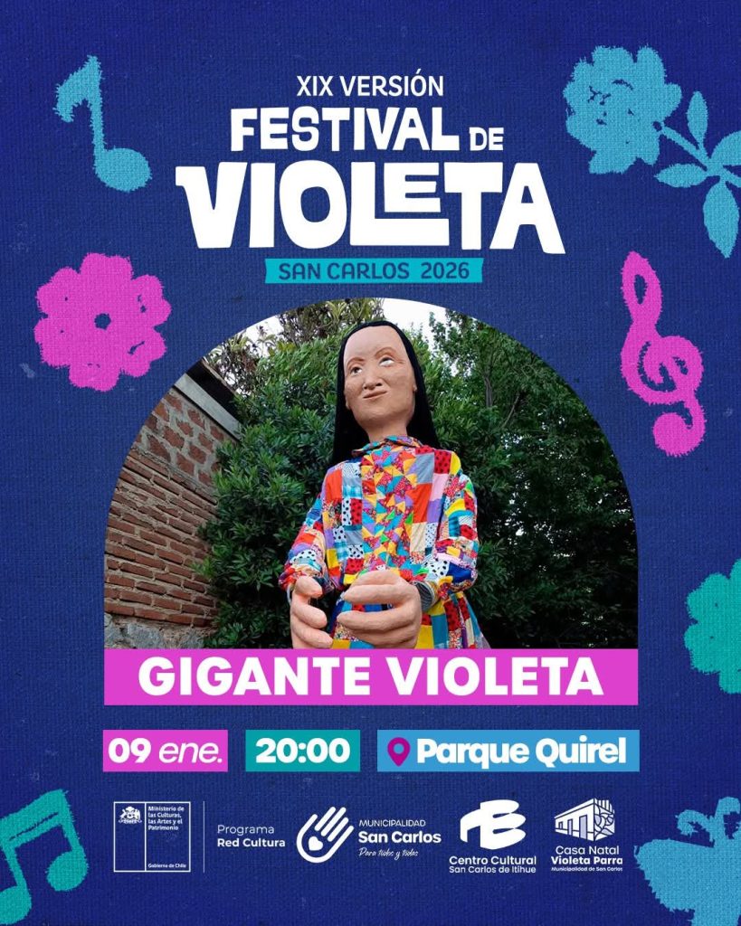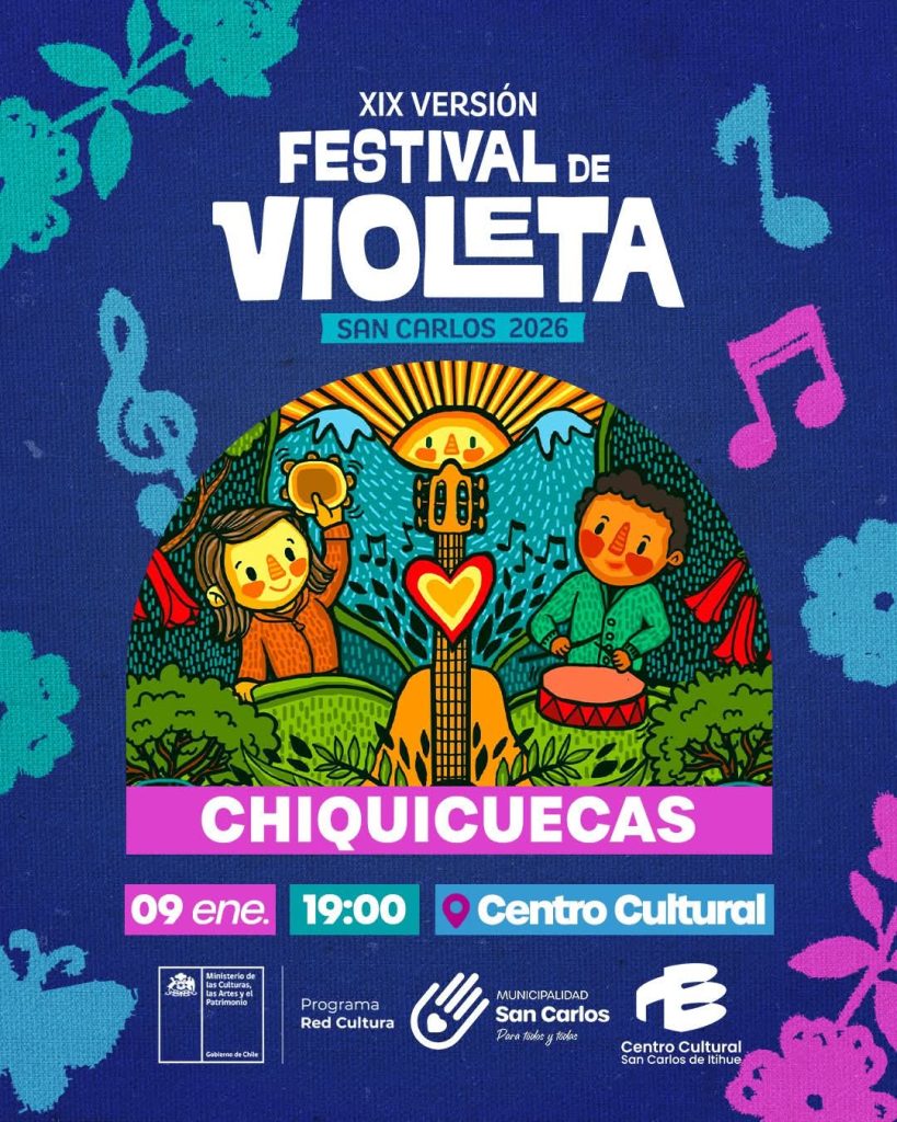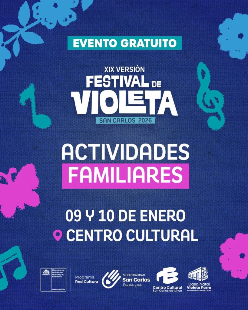 El evento, organizado por el Ministerio de las Culturas junto a la Municipalidad de San Carlos, ofrecerá actividades familiares, música en vivo y espacios de encuentro comunitario en homenaje a la obra y legado de Violeta Parra. La entrada es gratuita.